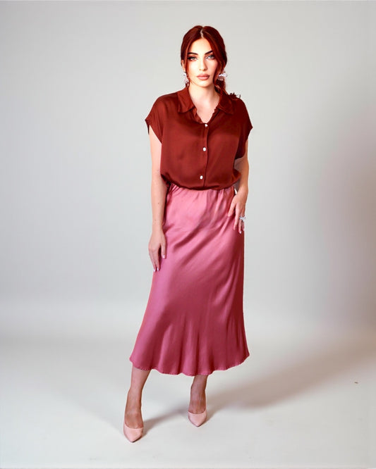 Elegant Skirt with Silky Shine (Dusty Pink)
