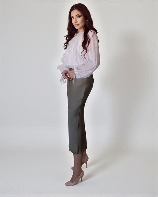 Elegant Skirt with Silky Shine (Cold Cappuccino)