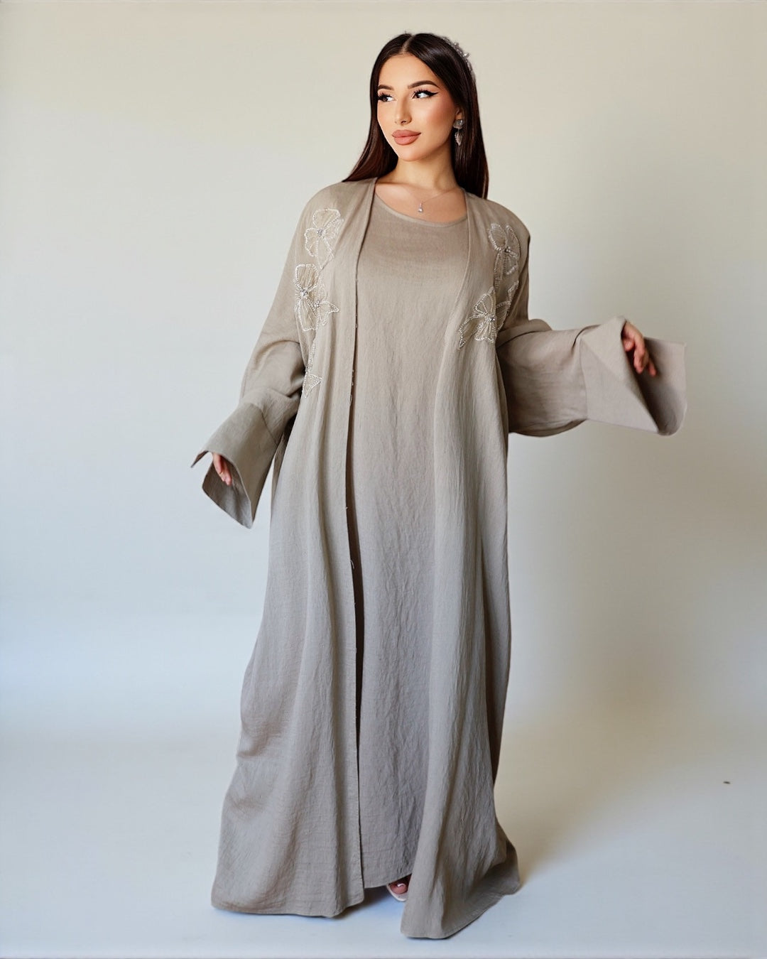 Noor Bloom – Embellished Two-Piece Set (Khaki)