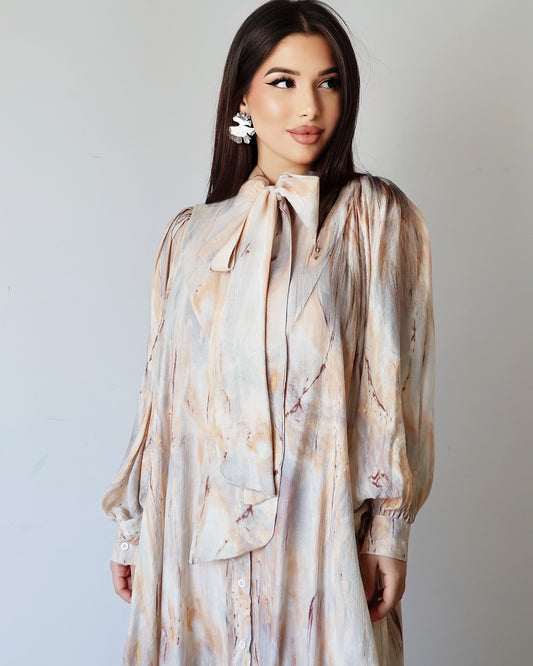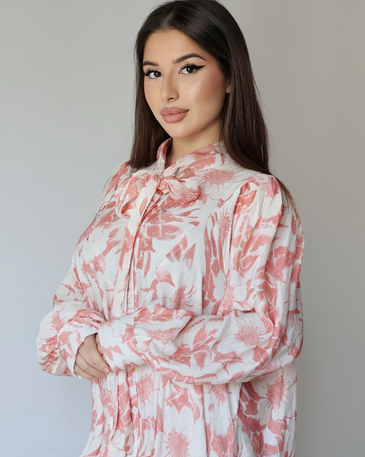 Шелковая блузка с бантом на шее (пыльно-розовый)