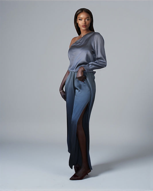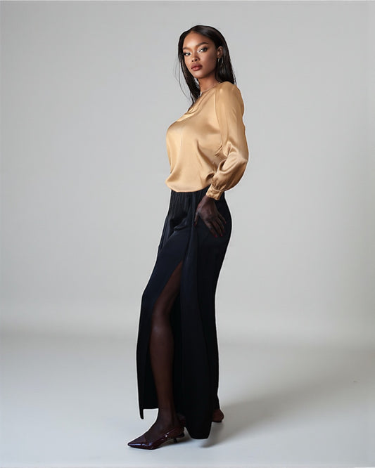 Брюки палаццо с разрезом по ноге светло-черного цвета