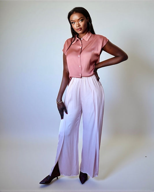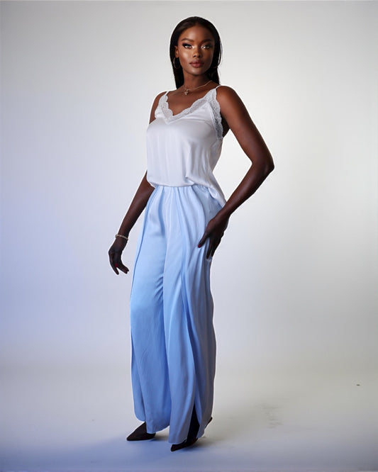 Брюки палаццо с разрезом по ноге светло-голубого цвета