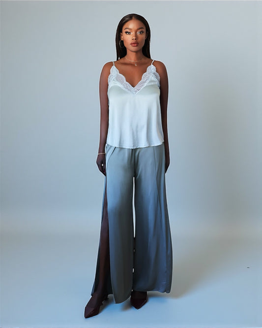 Брюки палаццо с разрезом по ноге, холодный зеленый