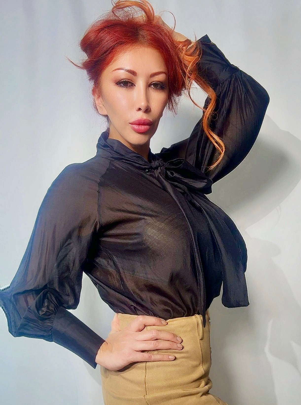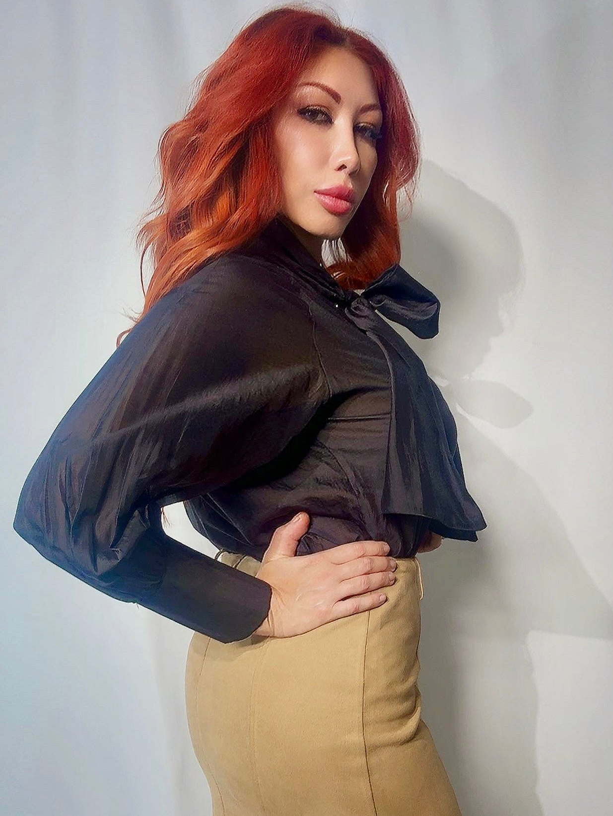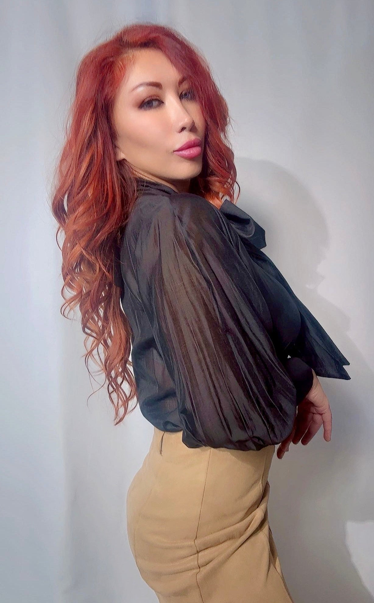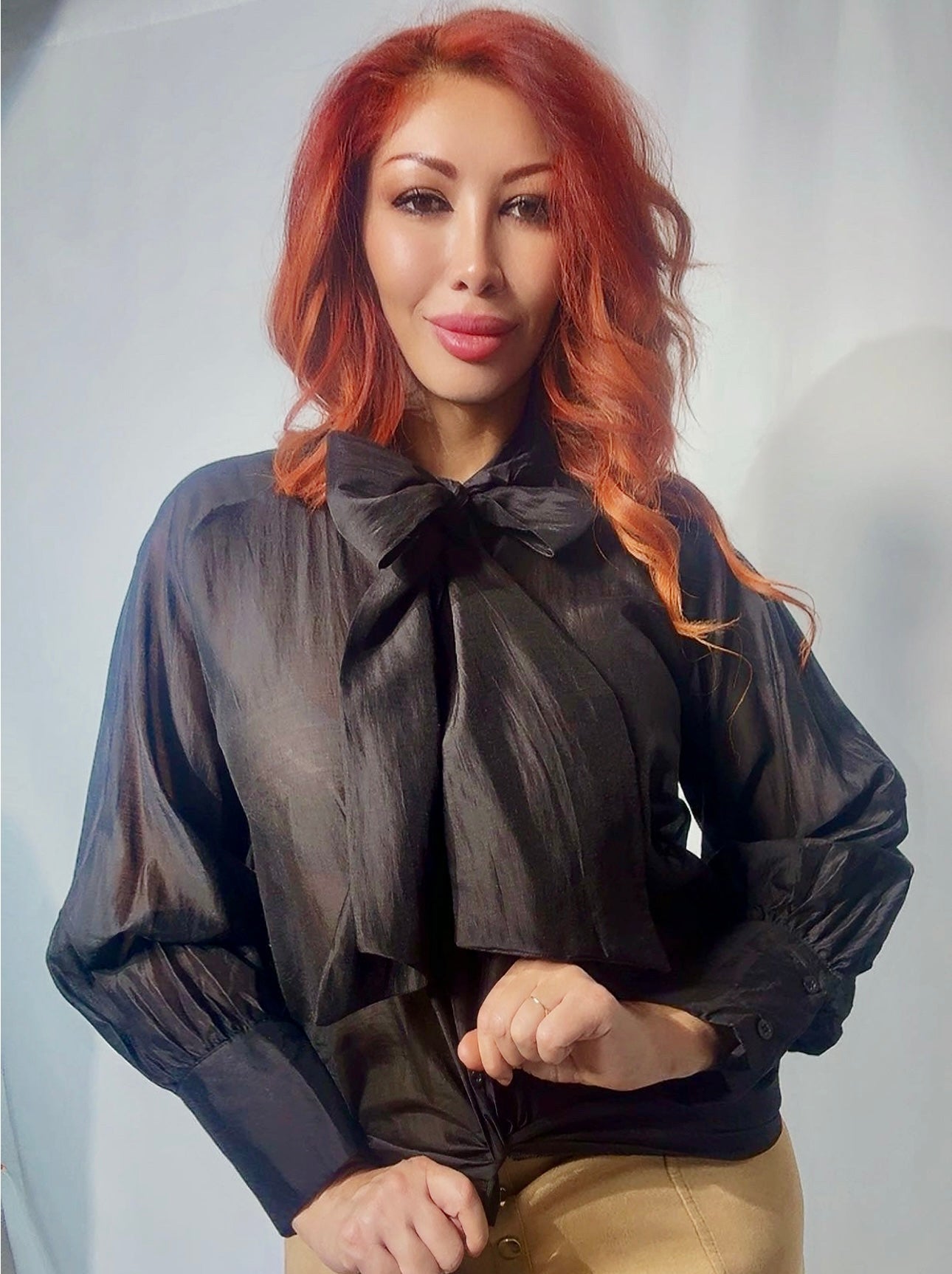 Примечание: итальянская элегантность в движении. Эта полупрозрачная блузка из мягкого тенселя с добавлением полиэстера мягко струится по телу, создавая изящный силуэт. Драматический бант на шее добавляет вневременной женственности, а прозрачные рукава с манжетами на концах намекают на романтическую уверенность. Идеально подходит для офиса, элегантных ужинов или изысканных вечеров, когда вы хотите чувствовать себя одновременно сильной и поэтичной.