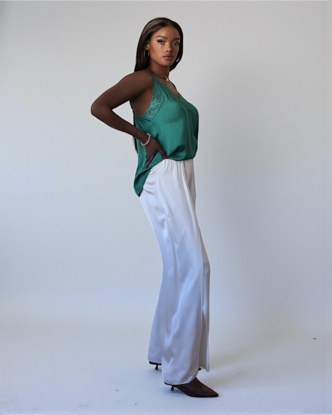 Брюки палаццо с разрезом по ноге светло-черного цвета