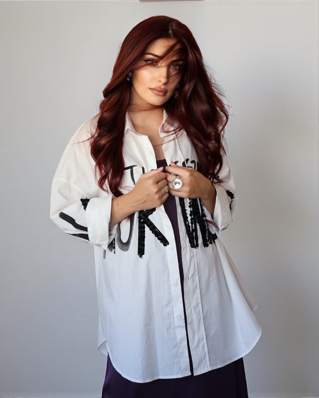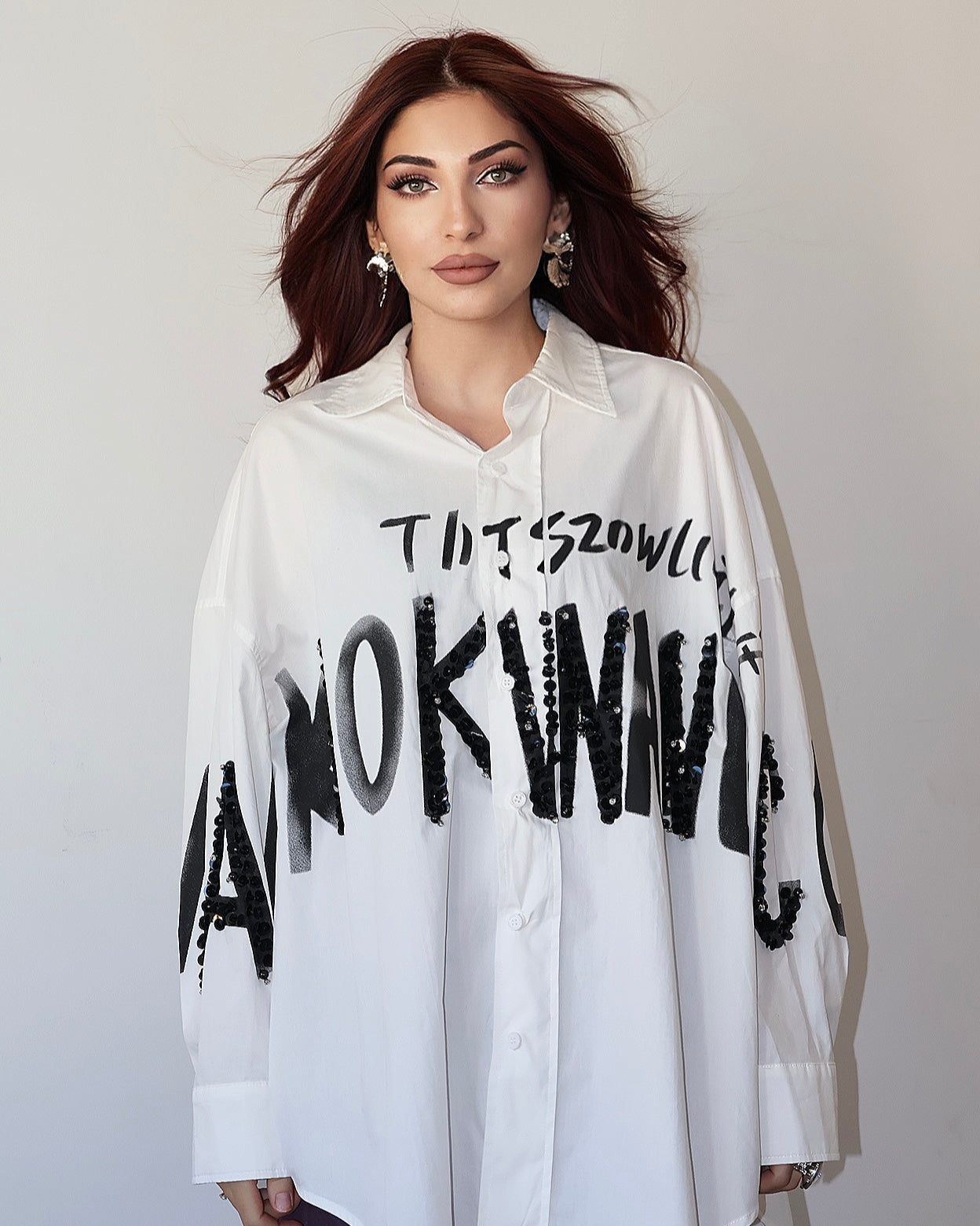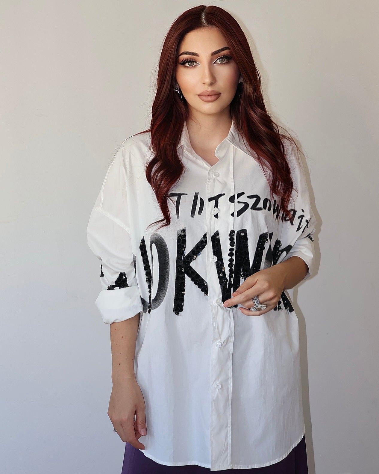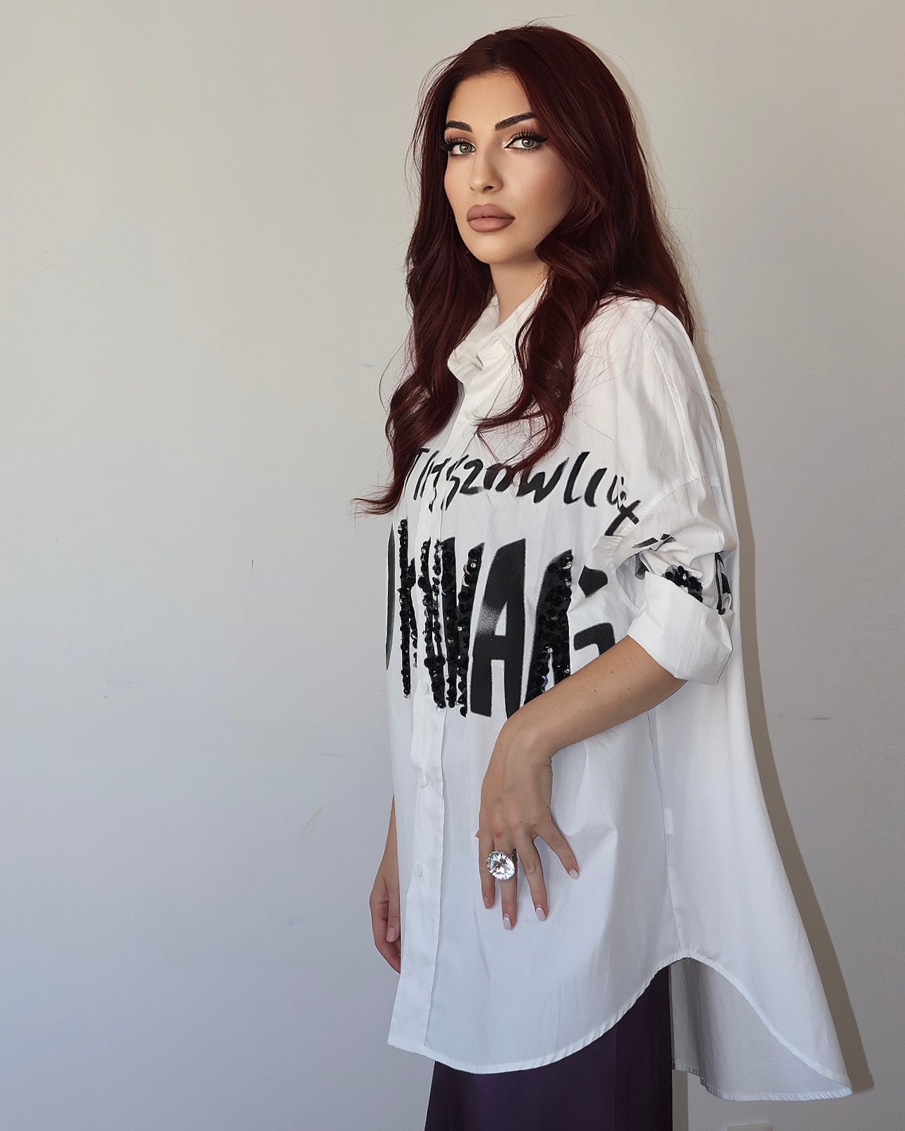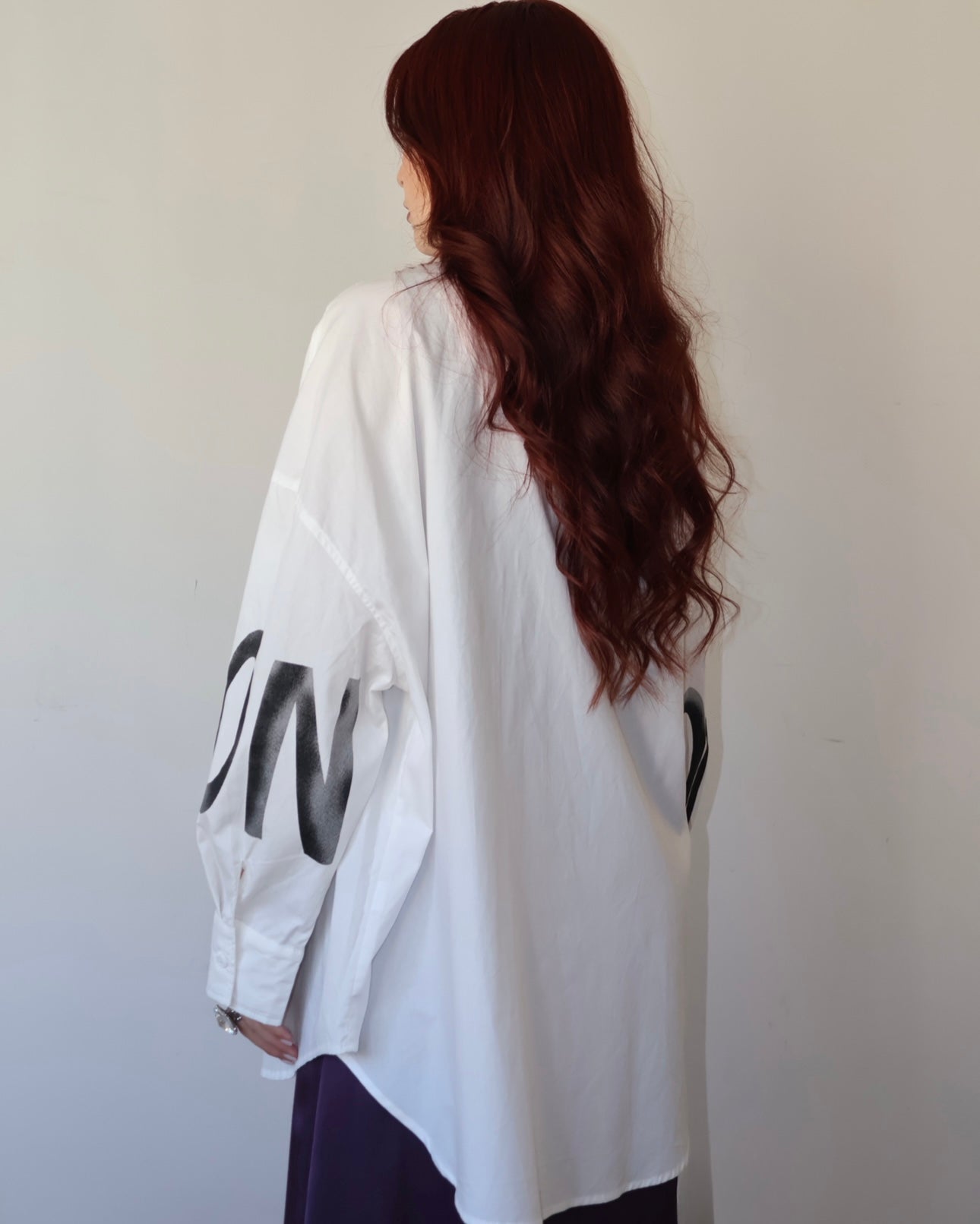 Примечание: рубашка из 100% хлопка с яркими черными надписями. Свободный крой с удлиненным подолом сзади — идеально подходит для размеров XL и XXL. Крутой и уверенный городской образ.