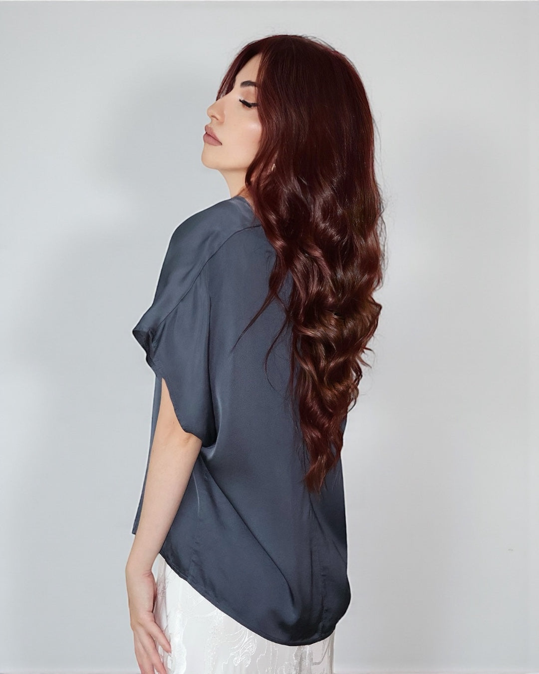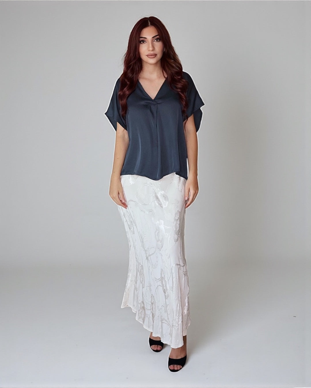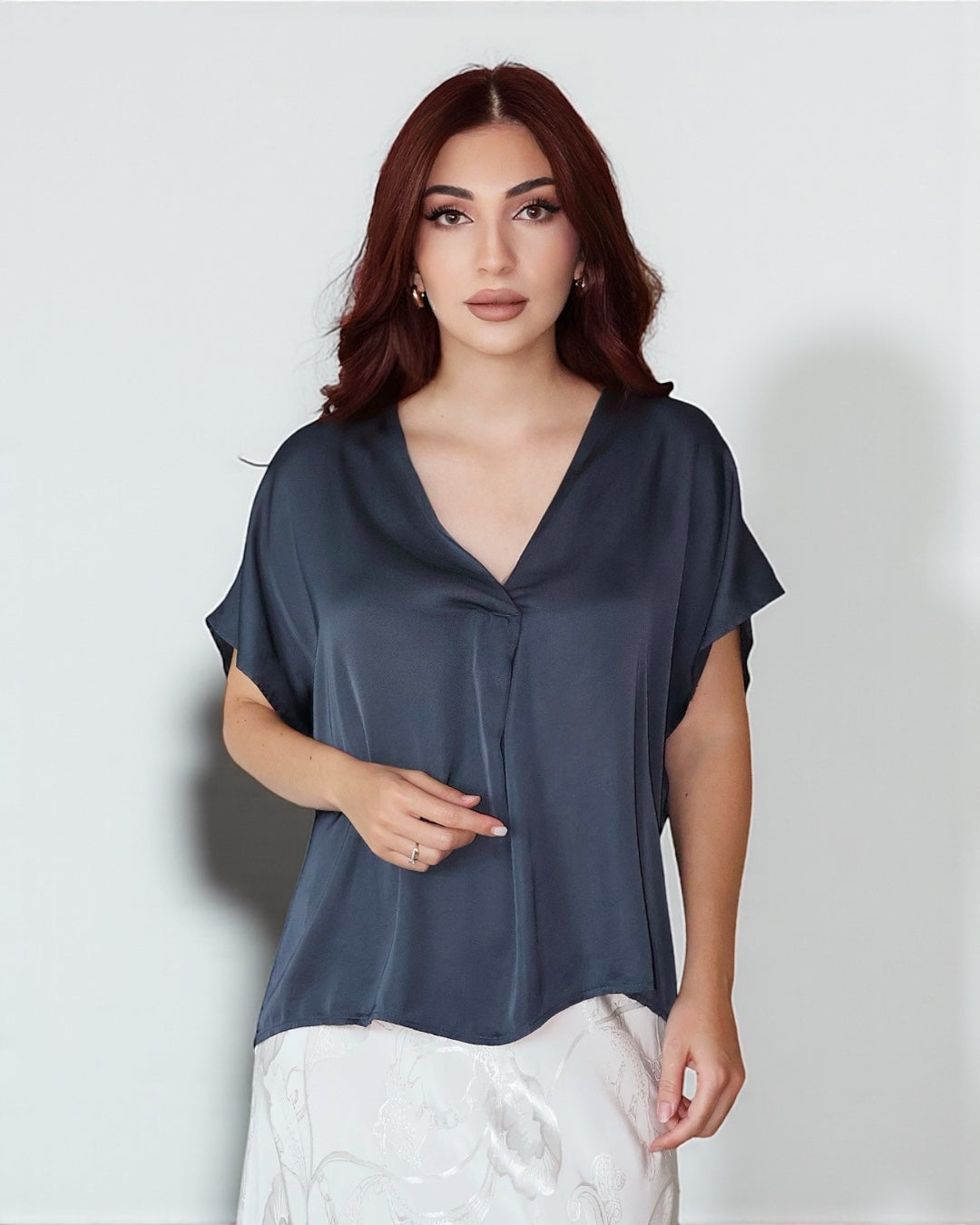 Примечание: Минимальный, но значимый. Muse — легкий топ с нежным матовым блеском, выполненный из мягкой смеси вискозы и вискозы. Идеально подходит как для рабочих дней, так и для вечерней элегантности. Его классический крой подходит для всех возрастов и фигур