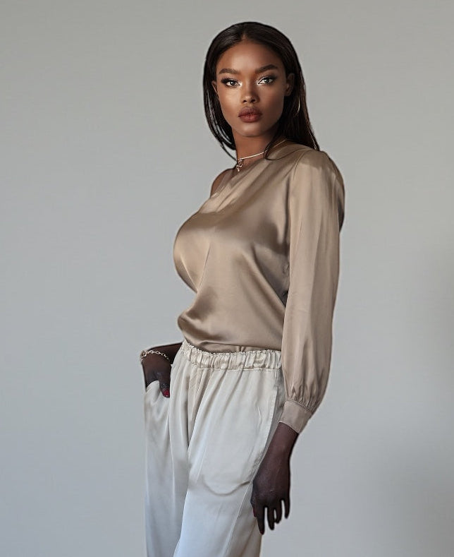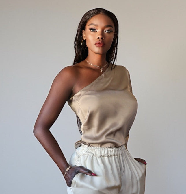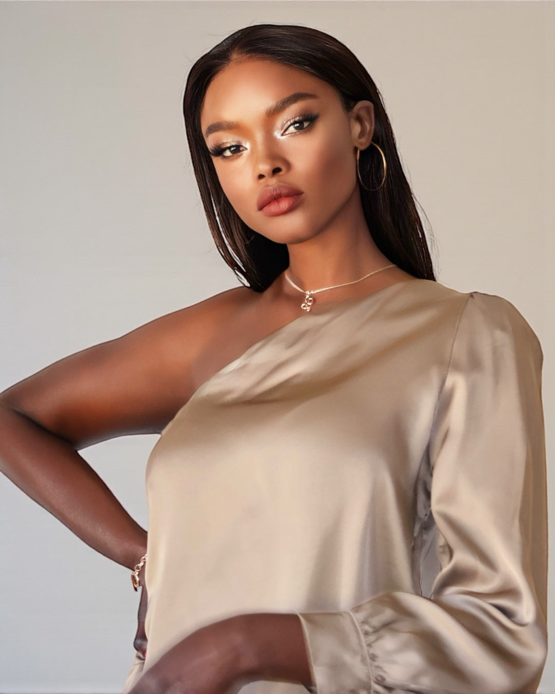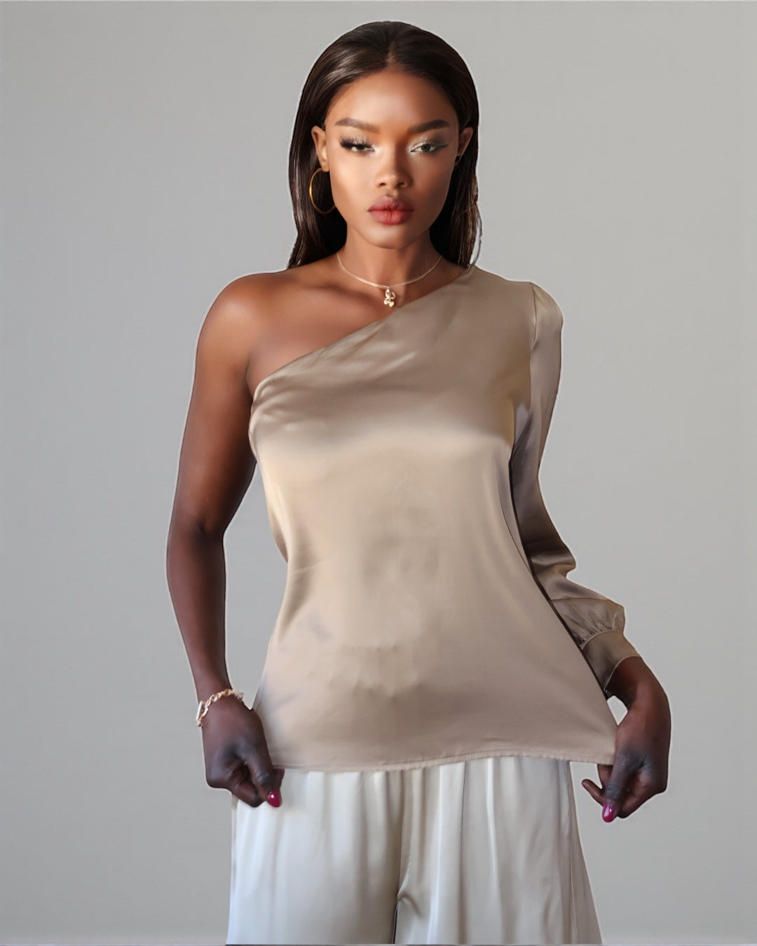 Примечание : Элегантность в каждом изгибе. Verona — атласная блузка на одно плечо, подчеркивающая утонченную женственность. Идеально подходит для особых моментов и шикарных вечеров