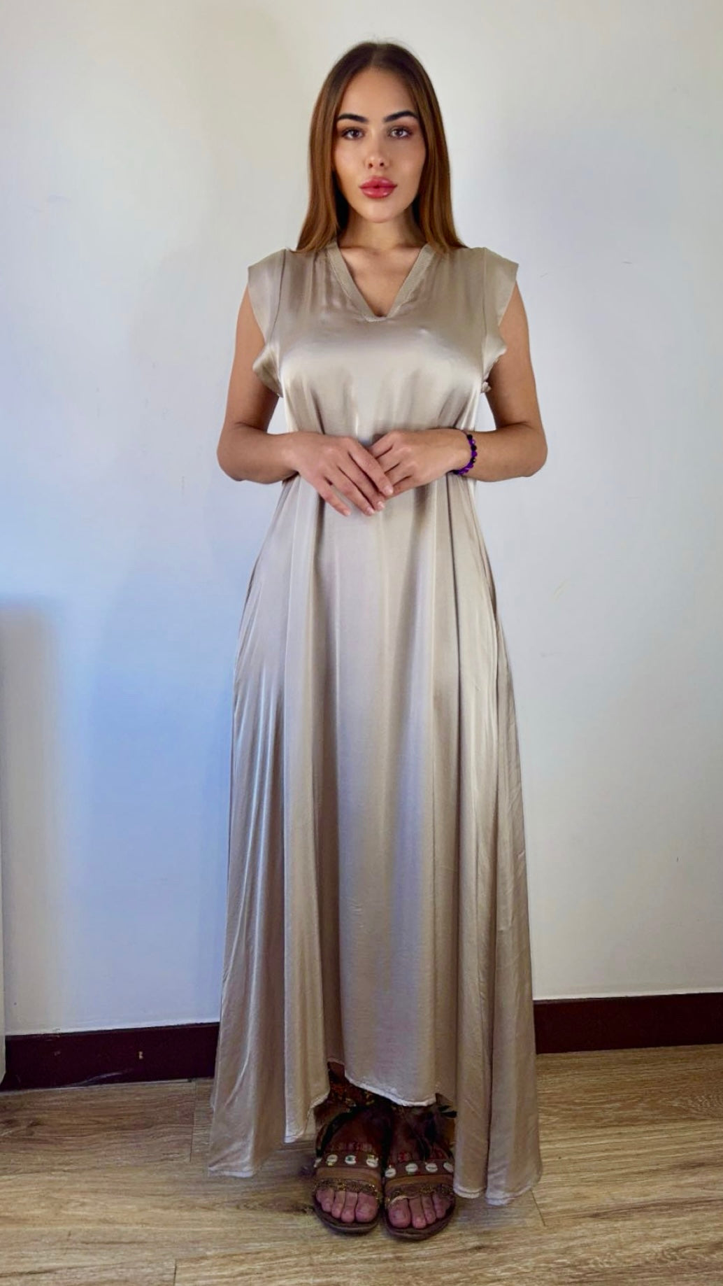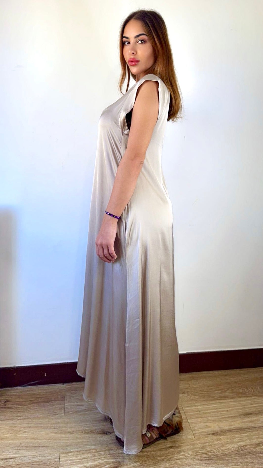 Примечание: Платье Aura, являющееся воплощением элегантности, неподвластной времени, отличается изящными рукавами-крылышками, которые мягко ниспадают на плечи, создавая ощущение непринужденности движения.