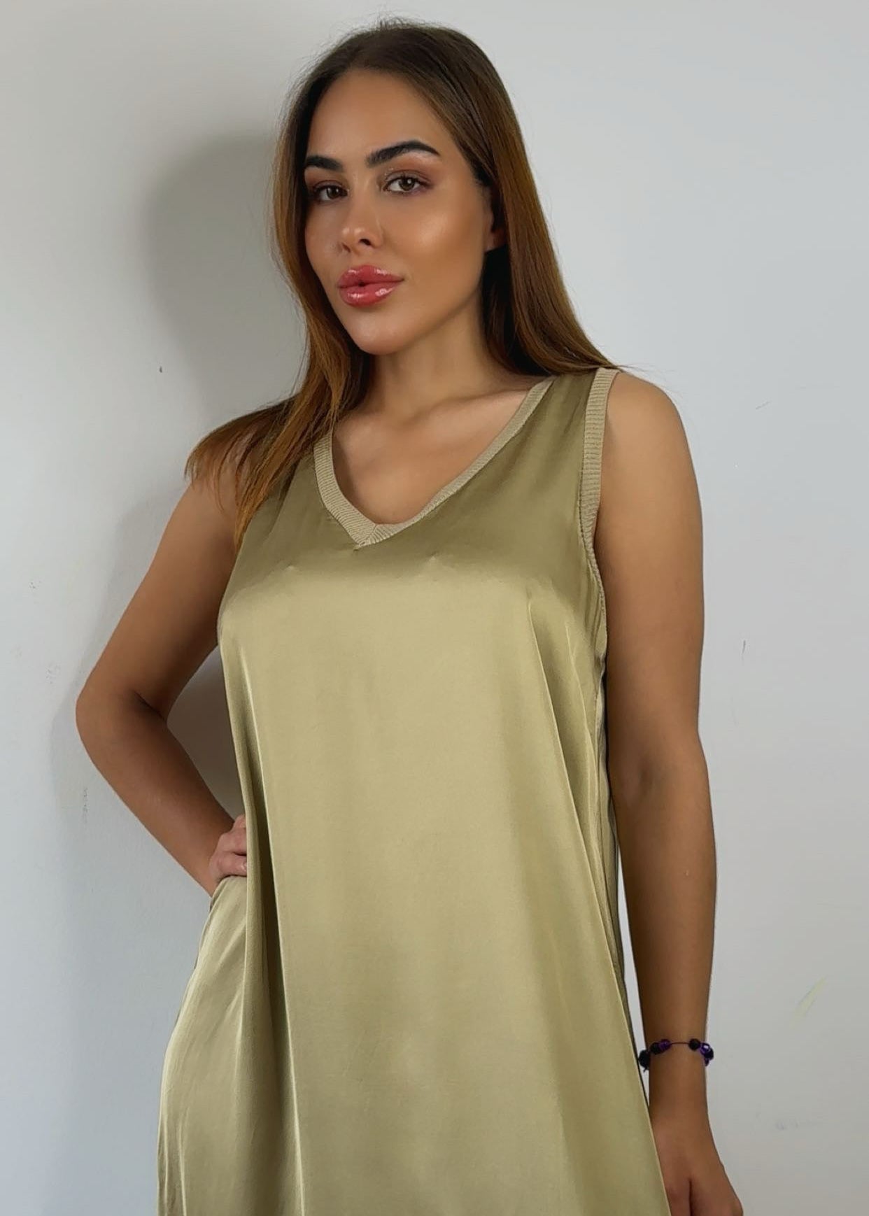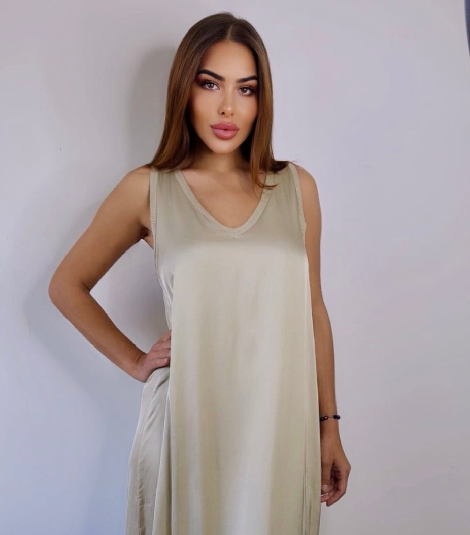 Примечание : Элегантно и дышаще. «Siena Soft» — платье без рукавов из шелковистой смеси вискозы и вискозы. Идеально подходит для теплых дней и вечных моментов.