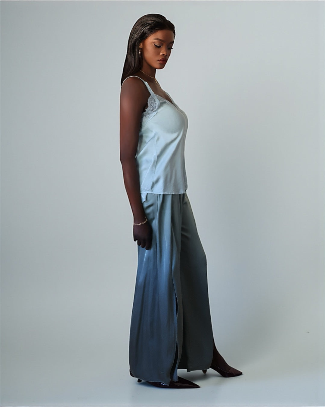 Брюки палаццо с разрезом по ноге, холодный зеленый